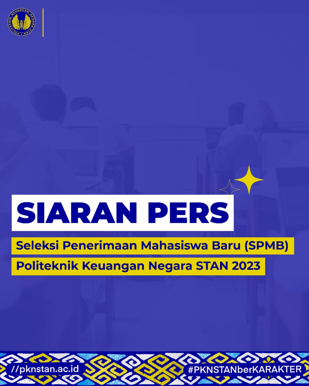 Siaran Pers SPMB PKN STAN Tahun 2023 / 27 February 2026 / Comments Dikirim oleh puguhfebrianto pada 27 February 2026 Berikut kami lampirkan Siaran Pers Nomor SP-1/BPPK/2023 mengenai UTBK Kembali Menjadi Syarat Seleksi Administratif SPMB PKN STAN Tahun 2023 Siaran Pers dapat diunduh disini [LINK 1] [LINK 2]